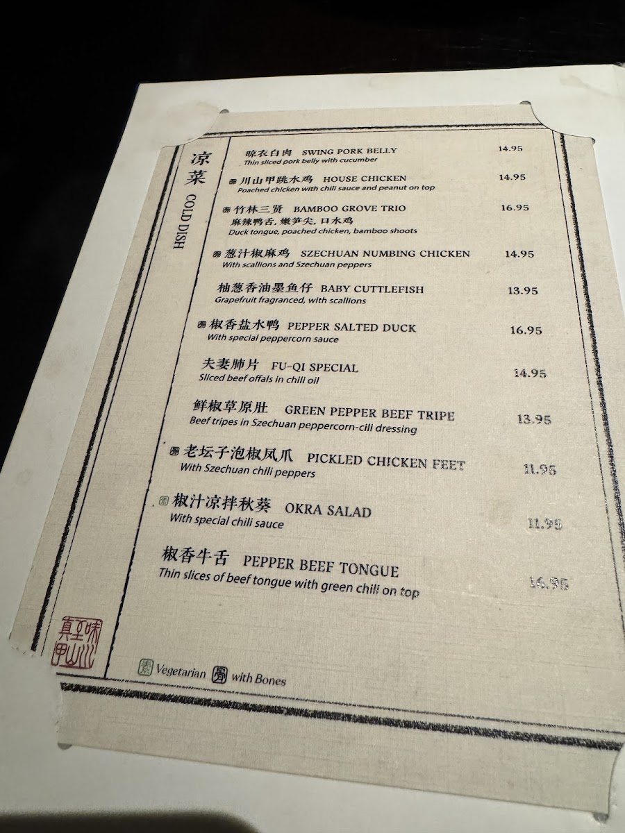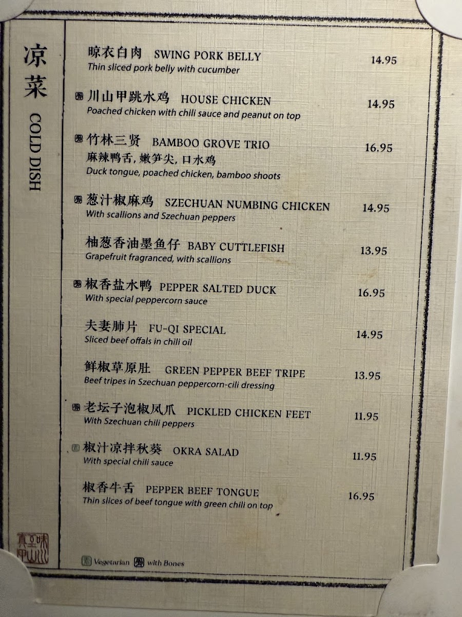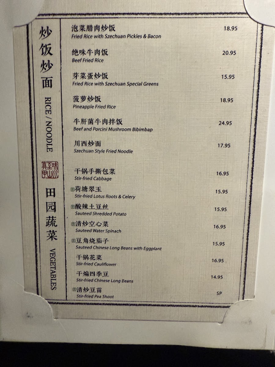 Mountain House Flushing 川山甲 Menu